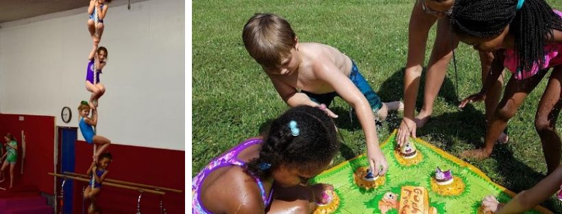 Typical Camp Activities include games, gymnastic classes, cheer tumble, ninja zone, outdoor water play, crafts, indoor/outdoor games, music, fitness activities and more! Activities rotate between air conditioned gym, air conditioned activity rooms and outside – weather permitting.